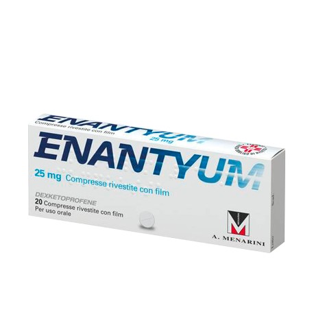 Enantyum è un antidolorifico appartenente al gruppo di medicinali chiamati farmaci antinfiammatori non steroidei (FANS). È usato per il trattamento del dolore di intensità da lieve a moderata, come dolore muscolare, mestruazioni dolorose (dismenorrea), mal di denti. Si rivolga al medico se non si sente meglio o se si sente peggio dopo 3 - 4 giorni.