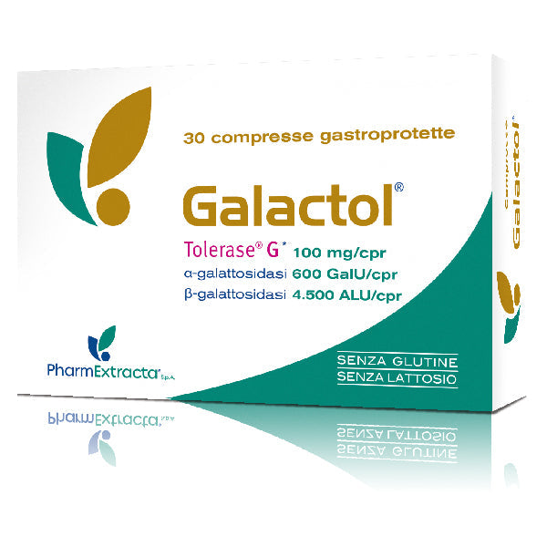 Agenti di carica: cellulosa microcristallina, calcio fosfato bibasico; Tolerase G (prolil-endoproteasi da Aspergillus niger), beta galattosidasi da Aspergillus oryzae 100.000 ALU/g; antiagglomeranti: biossido di silicio, magnesio stearato vegetale; alfa galattosidasi da Aspergillus niger 300.000 GalU/g; agenti di rivestimento: gomma lacca, calcio carbonato, idrossipropilmetilcellulosa, isomalto, trigliceridi a media catena.