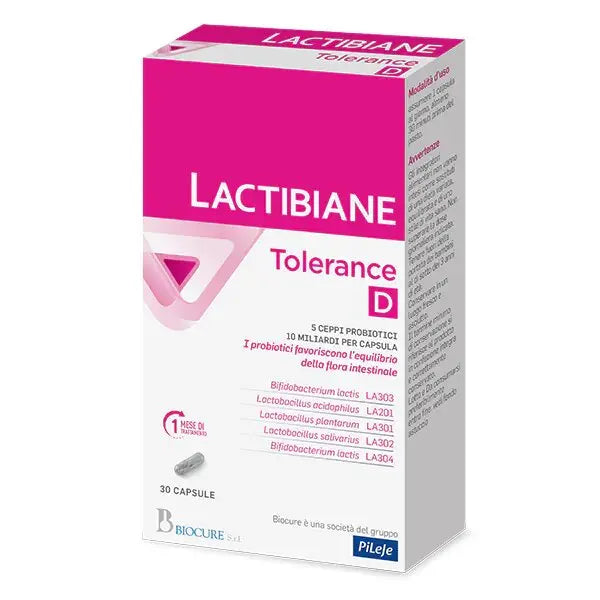 Lactibiane Tolérance attraverso l'azione sinergica di 5 ceppi probiotici favorisce l'equilibrio della flora intestinale.