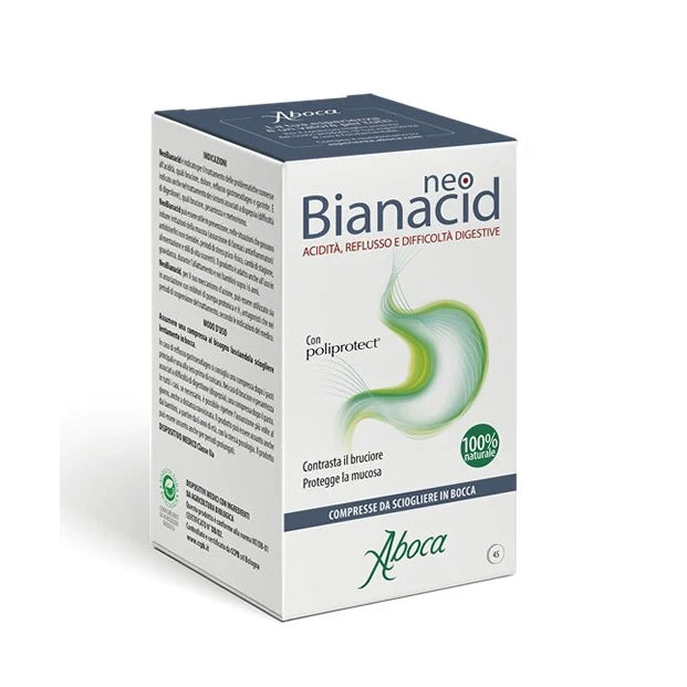 | Descrizione Prodotto 100% naturale, biodegradabile e con ingredienti da agricoltura biologica contenente Poliprotect, complesso vegetale e minerale. Indicato per il trattamento del reflusso gastroesofageo e del dolore di stomaco (dispepsia dolorosa), caratterizzati da rigurgito acido, bruciore, dolore, tosse irritativa, disfonia. Indicato anche nel trattamento dei sintomi associati a difficoltà di digestione (dispepsia non dolorosa), quali acidità, pesantezza e gonfiore dopo i pasti, sia ricorrenti che in caso di eccessi alimentari. Il prodotto può essere utile in prevenzione, nelle situazioni che provocano irritazione della mucosa. Il prodotto è adatto anche all'uso in gravidanza, durante l'allattamento e nei bambini sopra i 6 anni. Ingredienti Una compressa da 1,55 g contiene: complesso naturale Poliprotect 528 mg a base di polisaccaridi (frazioni estrattive LPME di malva* e altea*, gel fogliare disidratato di aloe vera* 105 mg) e minerali (limestone e nahcolite 423 mg), frazione flavonoidica estrattiva LPME di camomilla* e liquirizia* 46 mg, zucchero di canna*, gomma arabica, aroma naturale di menta. *Ingrediente da agricoltura biologica Senza glutine e lattosio. Avvertenze Non utilizzare se presente ipersensibilità o allergia individuale verso uno o più componenti. Se i sintomi persistono consultare il medico. Si consiglia di assumere il prodotto a distanza di almeno due ore da farmaci, in particolare le tetracicline. Il contenuto in glicirrizzina dovuto alla liquirizia è inferiore a quanto riportato essere causa di un possibile innalzamento della pressione. Tenere fuori dalla portata dei bambini. Conservazione Conservare in luogo fresco, asciutto, lontano da fonti di calore e al riparo dalla luce. La data di scadenza si riferisce al prodotto integro e correttamente conservato. Non utilizzare dopo la data di scadenza indicata. Validità a confezione integra: 30 mesi. Validità dopo la prima apertura: 6 mesi. Formato 45 compresse da 1,55 g ciascuna. Peso netto: 69,8 g. Cod. BIAN45_COX |