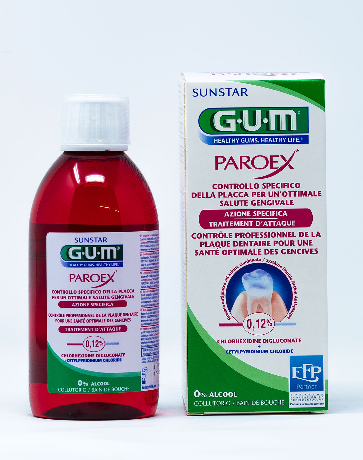 GUM PAROEX Collutorio Azione Specifica rappresenta il gold standard nel controllo chimico della placca batterica e nel trattamento delle affezioni parodontali. Questa formulazione professionale è specificamente sviluppata per il controllo temporaneo e mirato della placca batterica, offrendo un'azione antibatterica ad ampio spettro particolarmente efficace nel trattamento di gengiviti, parodontiti e nella gestione dei protocolli pre e post-operatori.