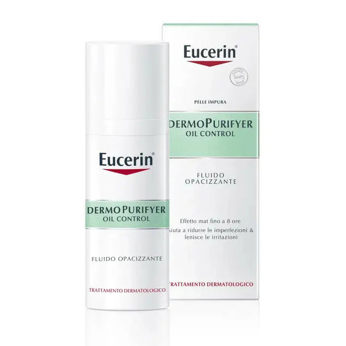 L'innovativo Eucerin DermoPurifyer Oil Control Fluido Opacizzante contrasta efficacemente i brufoli ed i punti neri ed aiuta a controllare i bisogni della pelle impura e a tendenza acneica a lungo termine.
