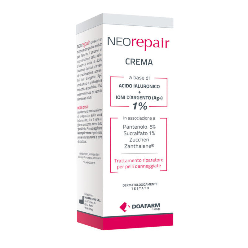 Neorepair crema è un trattamento specifico studiato per favorire i processi di rigenerazione della pelle. L'apporto locale di Acido Ialuronico facilita il processo di cicatrizzazione cutanea. Gli Ioni d'Argento (Ag+) contrastano la proliferazione microbica superficiale. Può essere utilizzata da neonati, bambini ed adulti. Senza conservanti, senza coloranti, senza profumo, nickel tested. Trattamento riparatore per pelli danneggiate.