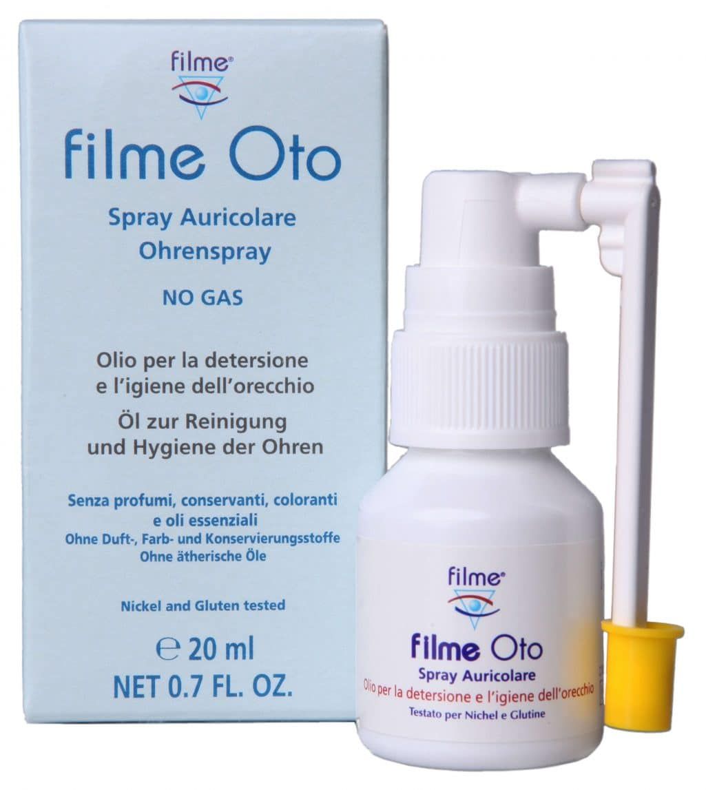 Filme Oto è un olio spray auricolare a base di tocoferolo acetato (Vitamina E) che può essere utilizzato sia per l'igiene dell'orecchio sia per ammorbidire il tappo di cerume formatosi in modo che risulti molto più semplice rimuoverlo.