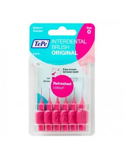 Scovolino TePe, progettato per pulire gli spazi interdentali che uno spazzolino normale non è in grado di raggiungere. Utilizzare quotidianamente per mantenere gengive e denti freschi e sani. Lo scovolino può essere utilizzato per la pulizia tra denti, impianti, corone e ponti. Lo scovolino TePe Original è disponibile in 9 misure con codice colore per adattarsi a spazi stretti e ampi - misure ISO 0-8. Gli scovolini interdentali sono sviluppati in collaborazione con esperti del settore dentale per garantire la massima qualità in ogni dettaglio. L'uso quotidiano aiuta a rimuovere fino al 40% in più di placca rispetto al solo spazzolino da denti. Un'efficace rimozione della placca previene l'infiammazione delle gengive, la carie e l'alitosi. Sostituendo la materia prima fossile con olio vegetale, abbiamo ridotto l'impronta di carbonio di questo scovolino, senza compromettere la qualità, l'efficienza o il design del prodotto.