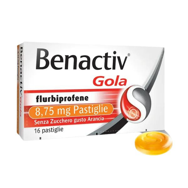 BENACTIV GOLA contiene flurbiprofene, un medicinale antinfiammatorio e analgesico (antidolorifico) non steroideo, che agisce contro l'infiammazione e il dolore della gola, della bocca e delle gengive.