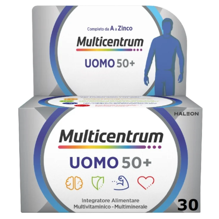 | Descrizione Integratore alimentare multivitaminico-multiminerale completo, formulato per supportare i fabbisogni nutrizionali degli uomini. Contiene alti livelli di vitamina D. Con livelli di magnesio e vitamine B specifici per supportare le esigenze nutrizionali dell’uomo. Ingredienti Sali di calcio dell'acido ortofosforico, ossido di magnesio, carbonato di calcio; agenti di carica: E 460, E 464, E 1200; acido L-ascorbico; agenti antiagglomeranti: E 468, E470b, E 551, E 553b; acetato di DL-alfa-tocoferile, nicotinamide, fumarato ferroso, D-pantotenato, calcio, ossido di zinco, cloridrato di piridossina, mononitrato di tiamina, riboflavina, beta-carotene, olio vegetale (noce di cocco e palmisto), solfato di rame, acetato di retinile, acido pteroil-monoglutammico, cloruro di cromo, molibdato di sodi, ioduro di potassio, selenato di sodio, D-biotina, fillochinone, colecalciferolo, cianocobalamina; colorante: E 132. Senza glutine. Caratteristiche nutrizionali