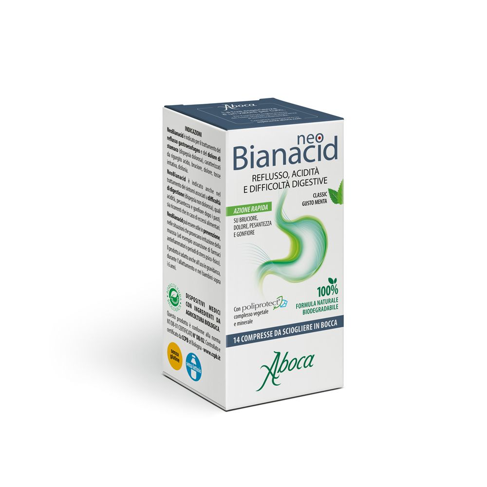 NeoBianacid è indicato per il trattamento del reflusso gastroesofageo e del dolore di stomaco (dispepsia dolorosa), caratterizzati da rigurgito acido, bruciore, dolore, tosse irritativa, disfonia.
